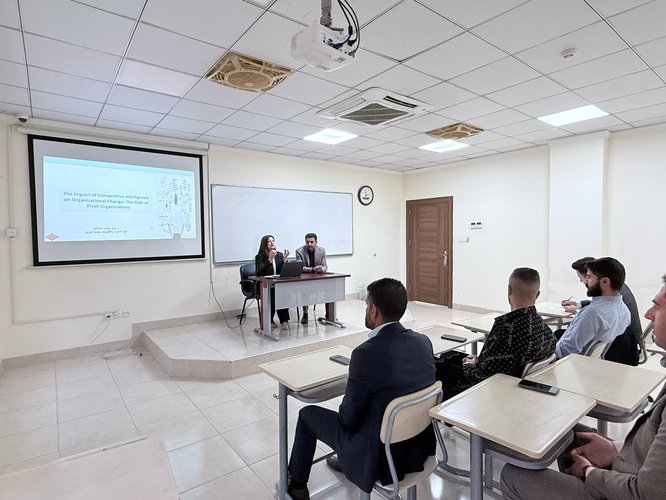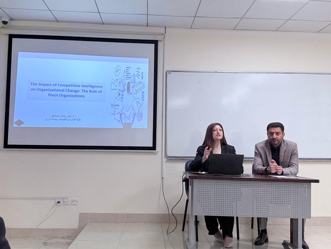 ل رۆژا دوشەمبێ رێكەفتی (28/4/2025) ل دەمژمێر (11:00) سپێدێ، راگریا كۆلیژا كارگێری و ئابووری سمینارەك بۆ دكتۆرا "ژیار محەمەد ئیسماعیل" ب ناڤونیشانێ "رۆلێ ژیریا ركابەری د گوهوینا ڕێكخراوەی" دا ڕێكخست.
