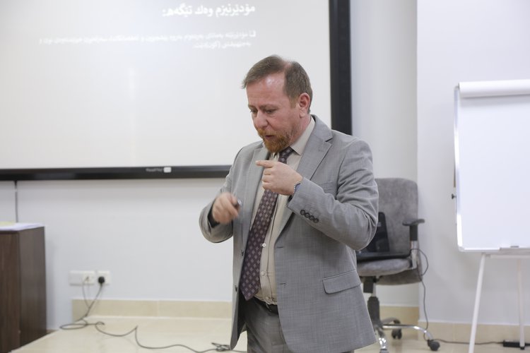 On Sunday (10/5/2025) at 11:00 a.m., the College of Languages organized a lecture entitled “The Five Principles of Modernity in Kurdish Drama” delivered by Dr. Abdulrahman Abdulghafour.