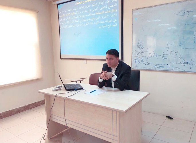 On Saturday, 24/9/2022, the Deanship of the College of Law and Politics at Nawroz University organized a scientific lecture for Professor Hirsch Fadel Shaker, in which he addressed the topic (the role of the United Nations in developing and implementing the advance warning system).