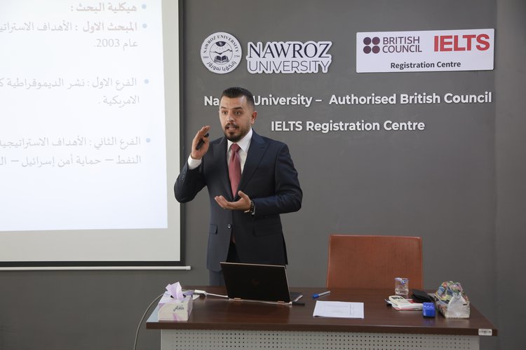 مامۆستایێ پشکا پەیوەندیێن ناڤدەولەتى و دپلۆماسى، ب ئاوایەکێ ئەکادیمیانە و ژ گۆشەیێن جودا ناڤەرۆکا سمینارا خۆ بۆ ئامادەبوویان پێشکێشکر.