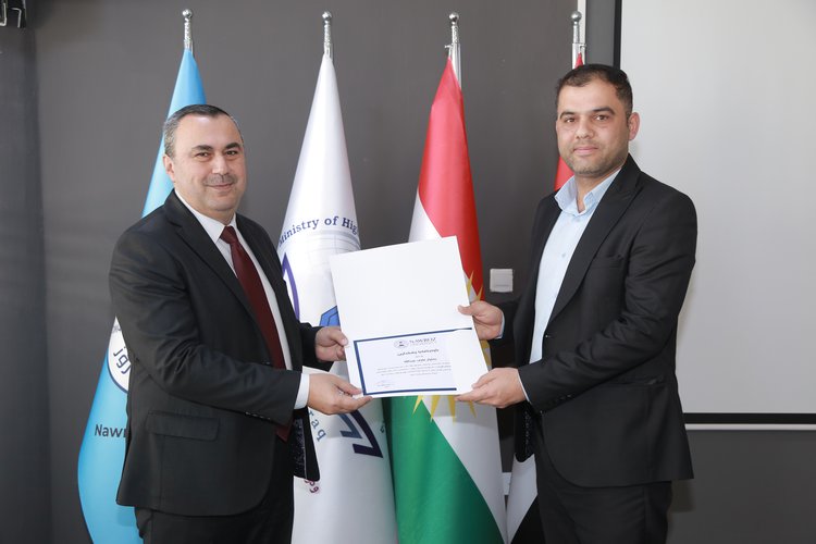 On Sunday, 11 January 2026, and in the presence of the President of Nawroz University, Asst. Prof. Dr. Mevan Arif Abdulrahman, and his Assistant, Prof. Dr. Hoger Taher Tawfiq, the Human Resources Department, in cooperation with the College of Languages, organized a course entitled Academic Writing in Kurdish. Certificates were awarded to participants at the conclusion of the course.