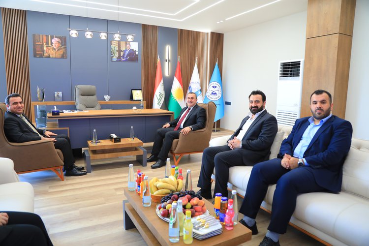 On the morning of Wednesday, August 6, 2025, Assistant Professor Dr. Mevan Arif Abdulrahman, President of Nawroz University, received an official delegation from Ararat Institute, headed by Dr. Idris Ali Hassan, Dean of the Institute. The delegation included several faculty members and heads of departments. The meeting was also attended by Professor Dr. Muayad Aghali, Vice President for Scientific Affairs, along with members of the University Council.