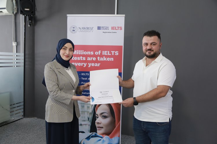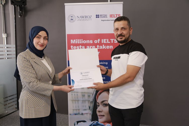 On Saturday, 30 August 2025, in the presence of the Director of the IELTS Registration Centre at Nawroz University, Ms. Maryam Waleed Khalid, a special ceremony was held to distribute IELTS certificates to participants of the preparation courses.