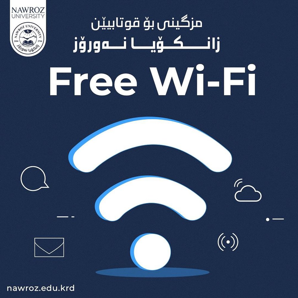 تسر إدارة جامعة نوروز الإعلان عن توفر خدمة الإنترنت غير المحدودة للطلاب داخل الحرم الجامعي. الميزات الخاصة بهذه الخدمة تشمل: