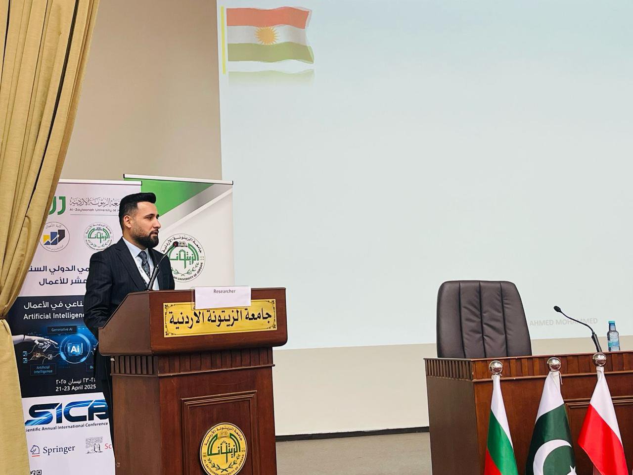 On Tuesday, April 22, 2025, Dr. Adnan Ahmed Mohammed from Nawroz University took part in the 19th Scientific Conference of Al-Zaytoonah University in Jordan. He presented a scholarly paper titled “Artificial Intelligence in the Workplace.”